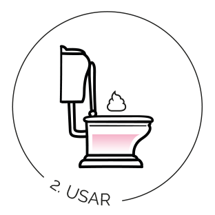 Rocíe primero OH LORD! sobre el agua del inodoro para crear una barrera en la superficie que atrape el olor.